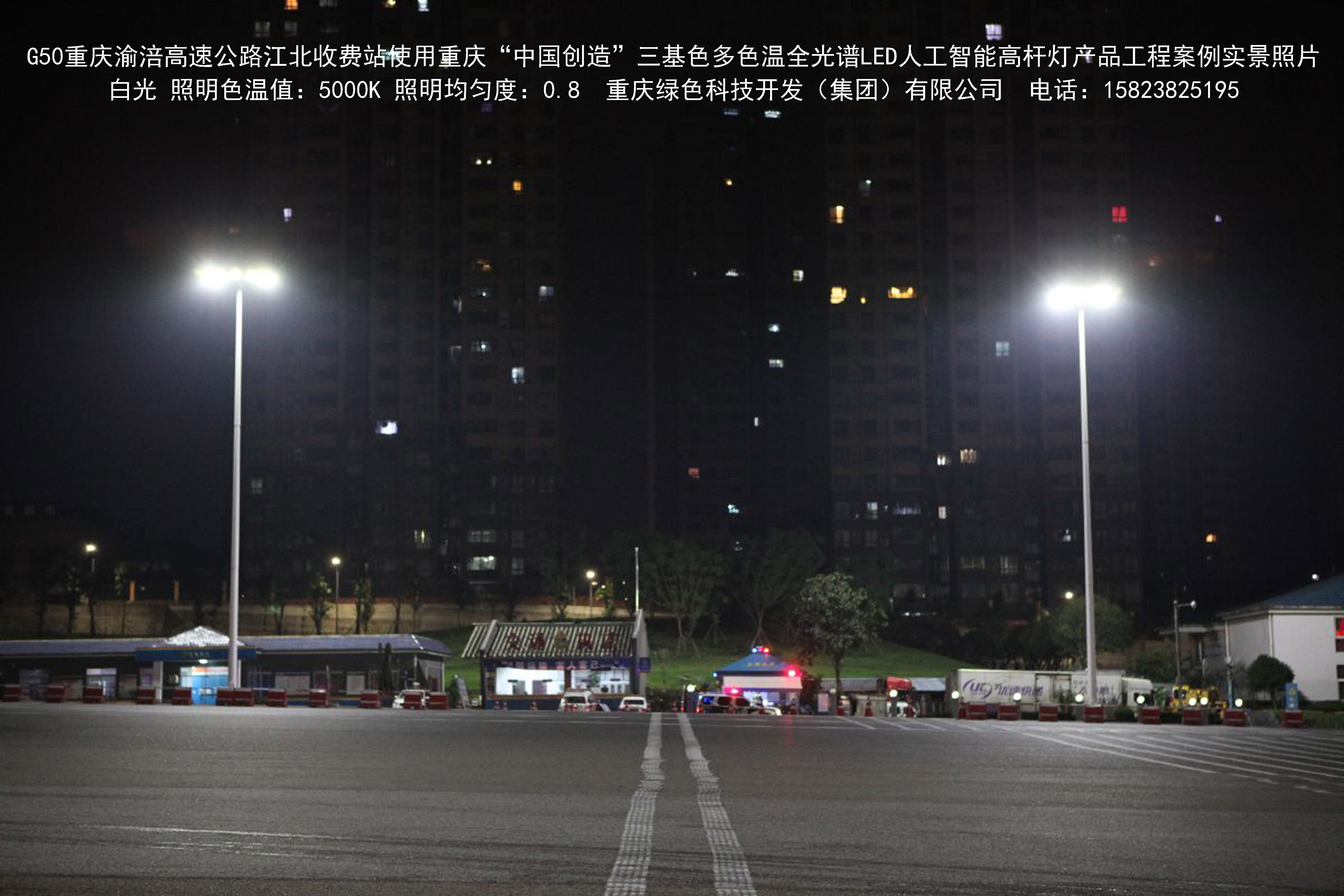 2016年8月,重慶渝涪高速公路有限公司使用我司自主研發制造的重慶“中國創造”三基色多色溫全光譜LED人工智能高桿燈系列產品,實施了市政設施品質提升工程。該工程已全面竣工。工程實施后,極大地提高了道路照明清晰度、燈光均勻度、舒適度。通過智能終端實現單燈感知、線纜防盜報警,與原高壓鈉燈相比,節能率60%以上,有效解決了關閉控制回路或間隔關燈方式造成的照明暗區,確保行人和車輛通行的安全,實現城市路燈照明系統的智能化管理,推進了智慧城市建設。