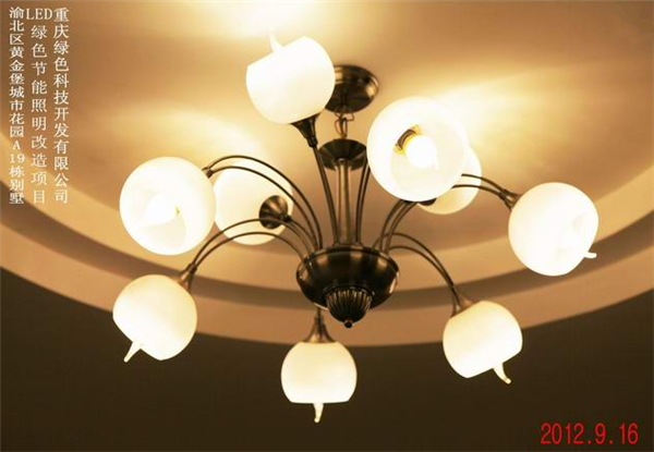 我司在渝北區黃金堡城市花園A19棟別墅實施的LED綠色節能照明改造案例實景圖