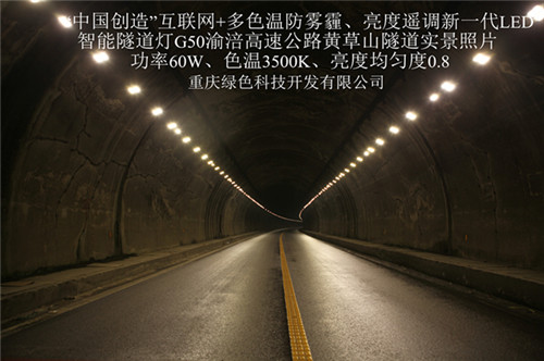 今年5月份,重慶渝涪高速公路有限公司與重慶綠色科技開發有限公司就G50滬渝高速黃草山、同心寨、廟堡隧道LED綠色照明節能改造項目,以合同能源管理模式簽訂了合同。該項目使用“中國創造”互聯網+多色溫防霧霾、亮度遙調新一代LED智能隧道燈及遠程智能控制系統,對原隧道3629盞鈉燈實施綠色照明節能改造。三個隧道的六個隧道單元,總長度為5.5公里,雙邊布燈11公里,是目前國內外隧道照明中使用該產品里程最長、數量最多的綠色照明工程。該工程現已全面竣工并投入使用。