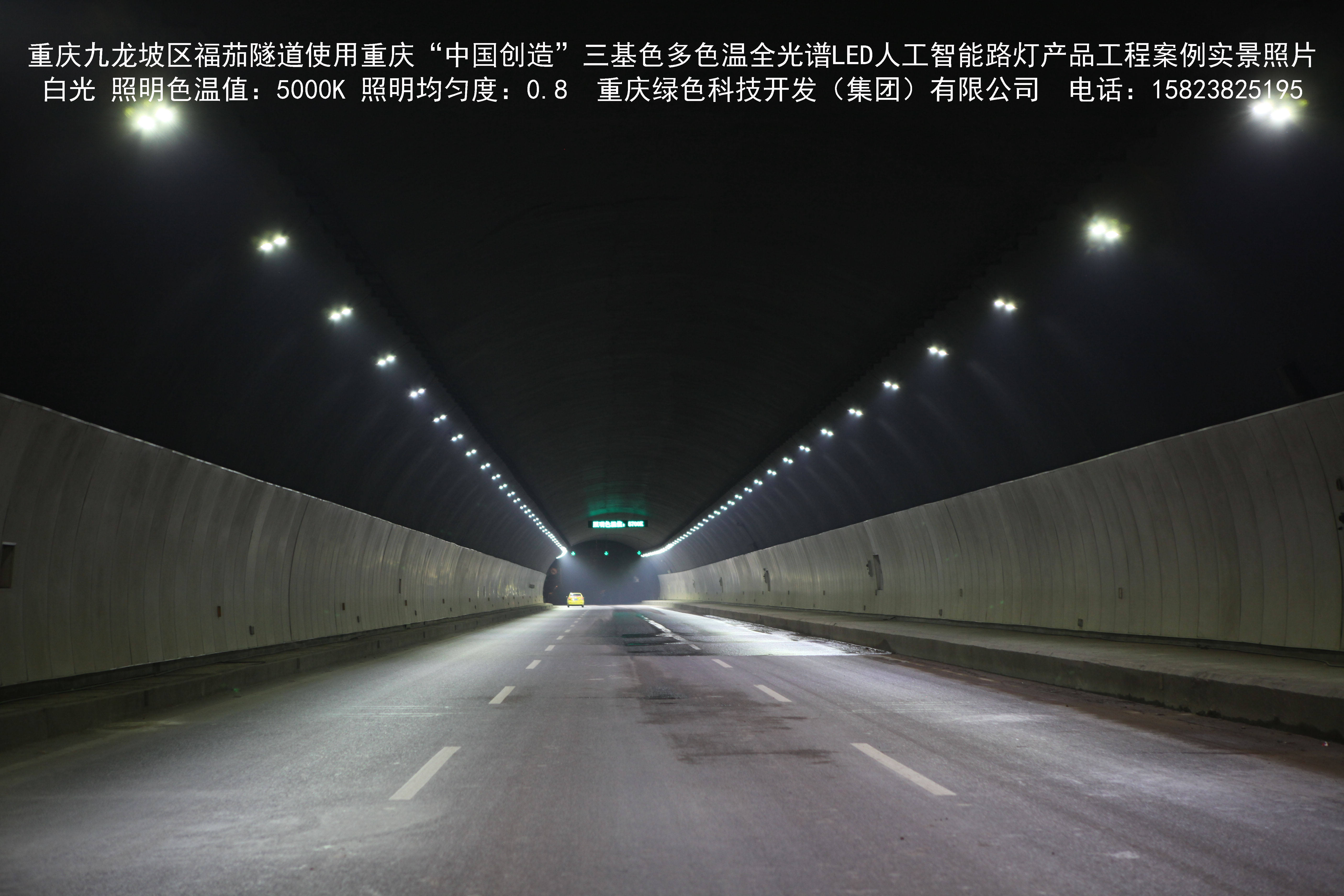 該產(chǎn)品已先后在重慶市渝中區(qū)濱江路洪崖洞沿線(魁星樓立交橋至湖廣會館立交橋)、菜袁路,合川全城區(qū),永川新城區(qū),渝中區(qū)龍家灣、黃沙溪、鵝嶺、袁家崗草坪、朝千隧道,南岸區(qū)茶園渣場路、風(fēng)臨路、鵝風(fēng)支路,江津區(qū)雙福園區(qū)津馬大道,銅梁區(qū)龍騰大道,九龍坡區(qū)石新路,石坪橋、陳家坪、福茄、九龍、五臺山、美茵河谷、二郎、袁家崗下穿隧道,沙坪壩區(qū)漢渝路下穿隧道,陸軍軍醫(yī)大學(xué)全校區(qū)道路,豐都縣迎賓大道,G50重慶渝涪高速公路全線收費站、服務(wù)區(qū)及鐵山坪、華山、黃草山、同心寨、廟堡隧道,G5013渝蓉高速全線收費站、服務(wù)區(qū),渝遂高速青木關(guān)隧道,寧夏回族自治區(qū)賀蘭縣全城區(qū)等百余處進行了大規(guī)模應(yīng)用,獲得了良好的社會效益。