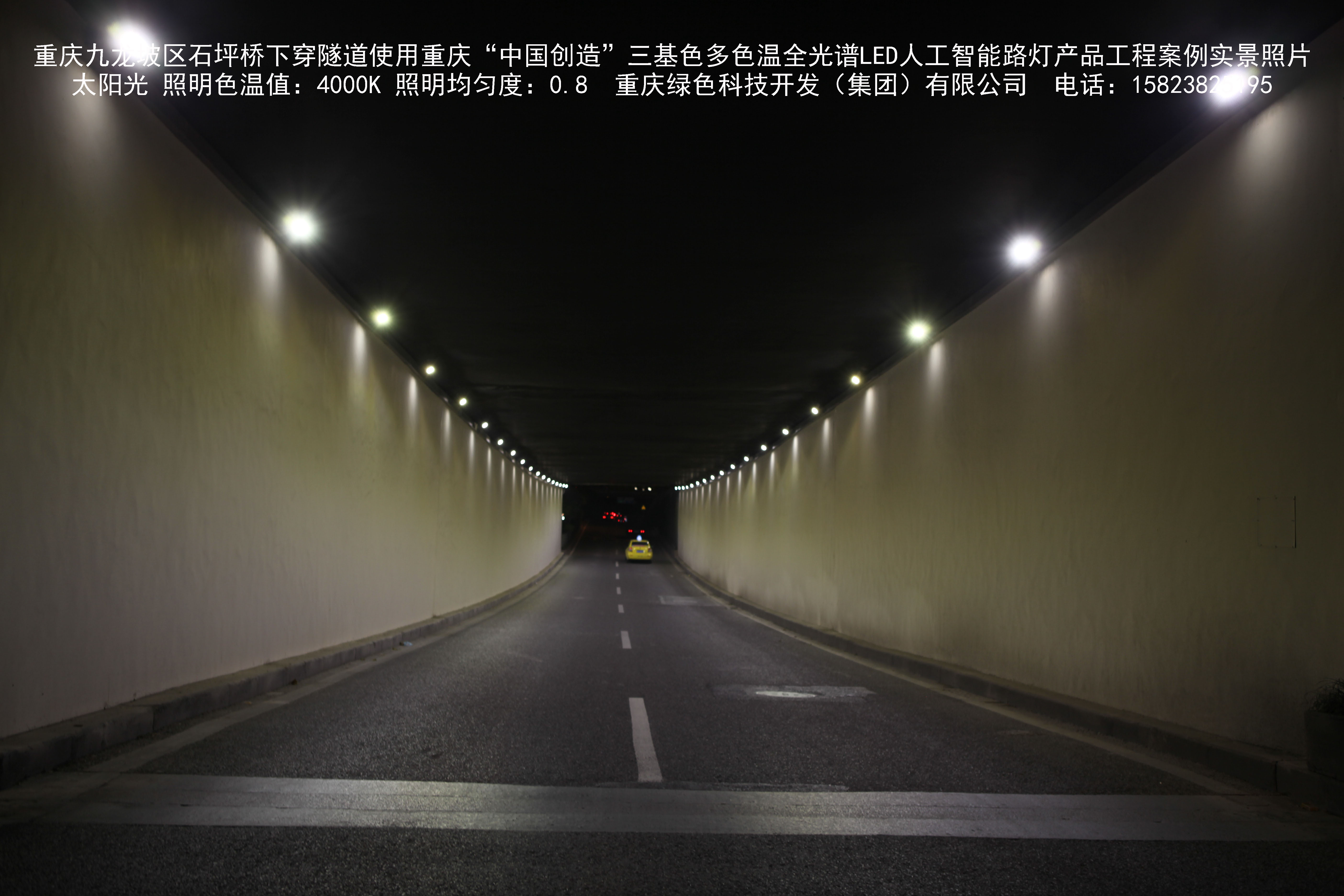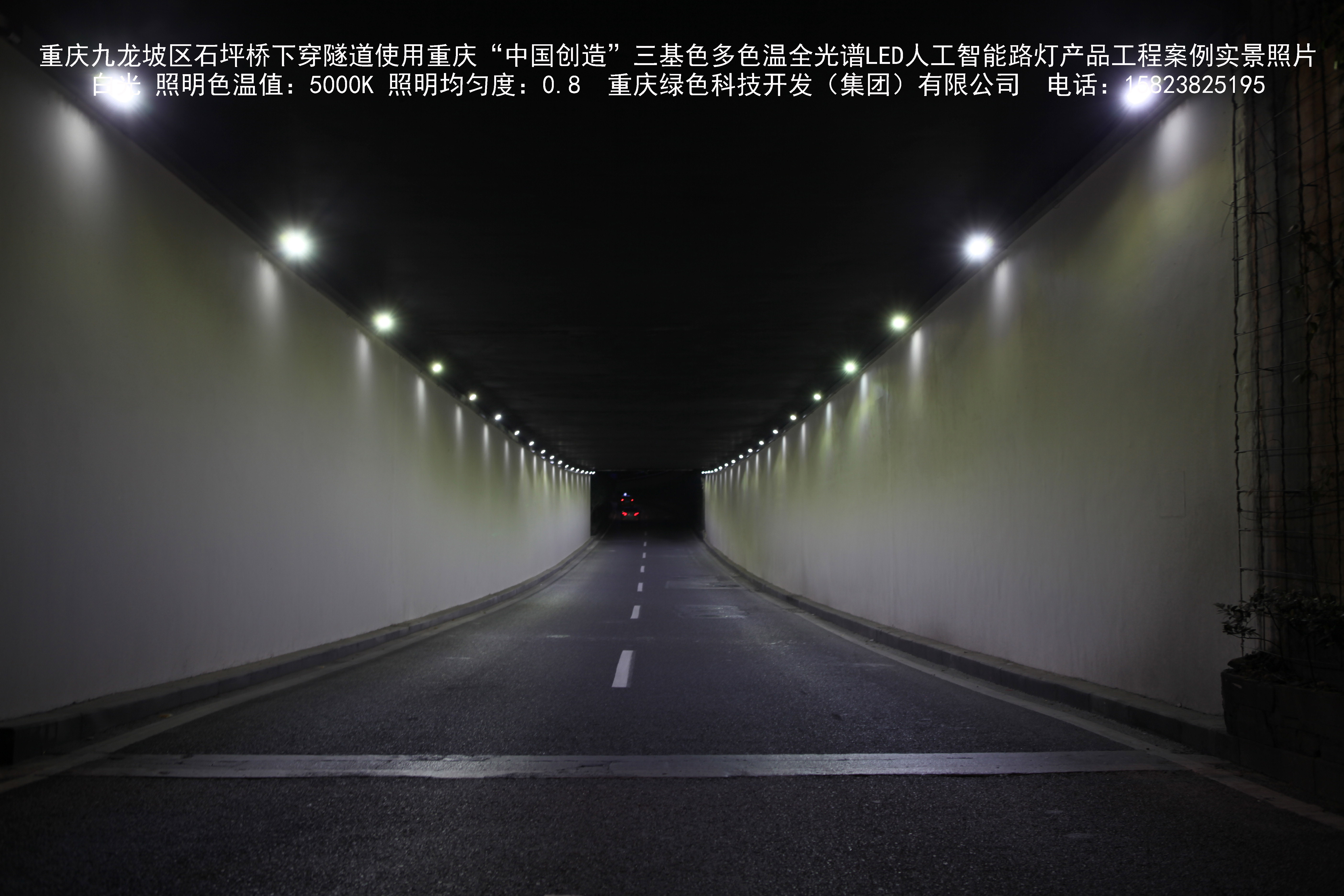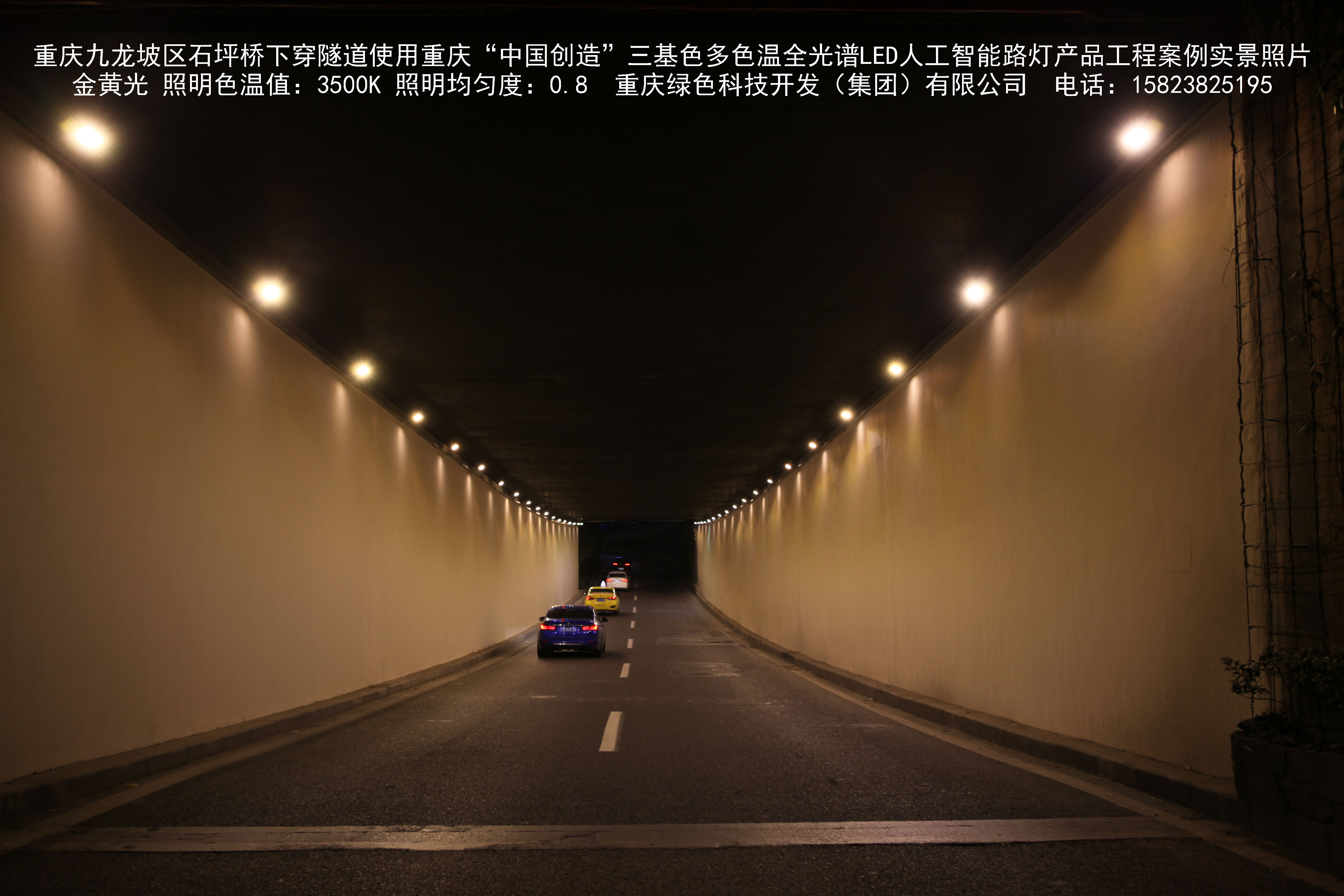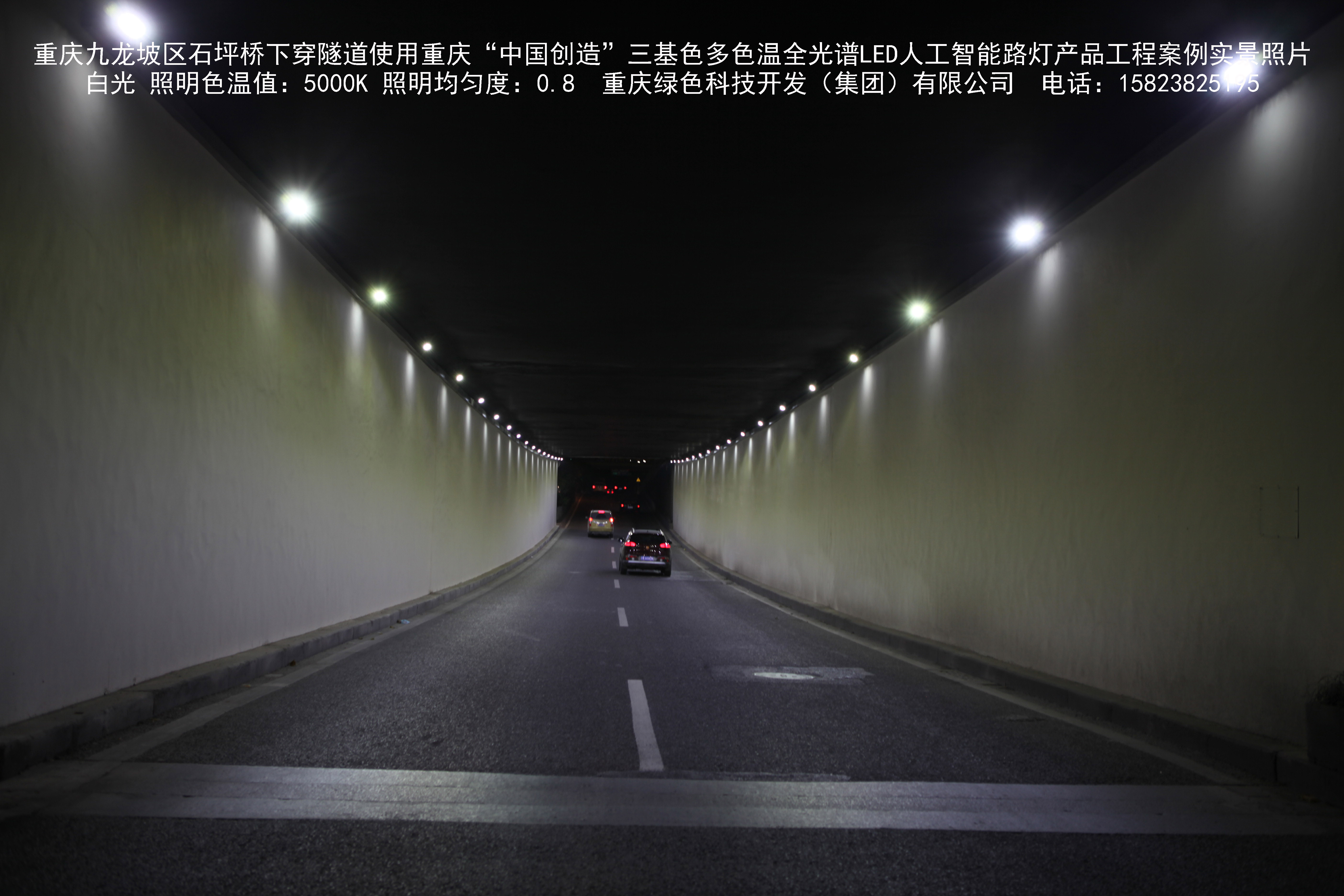 2018年9月,重慶市九龍坡區城市管理局使用我司自主研發制造的重慶“中國創造”三基色多色溫全光譜LED人工智能隧道燈系列產品,實施了石坪橋下穿隧道市政設施品質提升工程。該工程已全面竣工。工程實施后,極大地提高了城市照明清晰度、燈光均勻度、舒適度。通過智能終端實現單燈感知、線纜防盜報警,與原高壓鈉燈相比,節能率60%以上,有效解決了關閉控制回路或間隔關燈方式造成的照明暗區,確保行人和車輛通行的安全,實現城市路燈照明系統的智能化管理,推進了智慧城市建設。