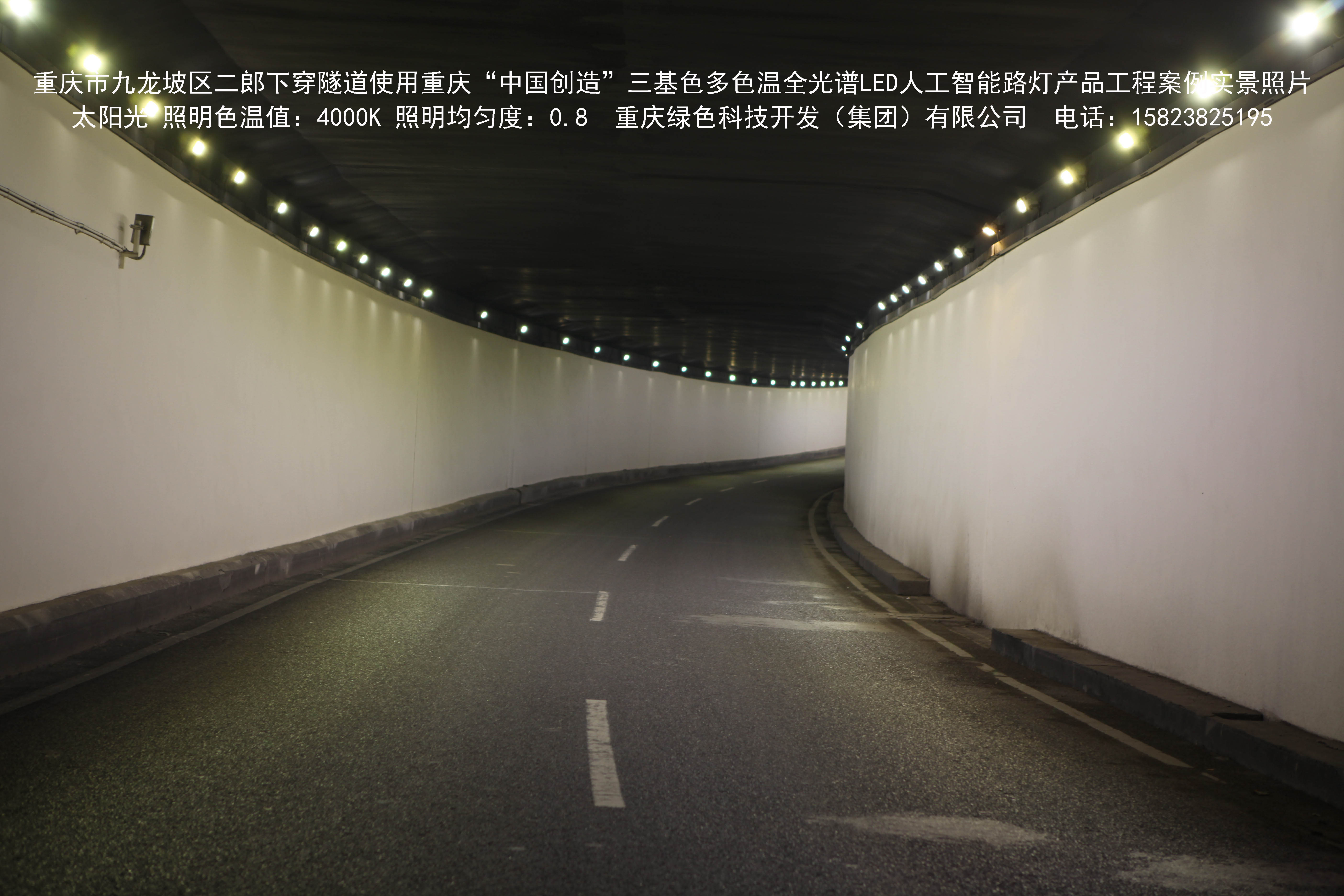 2018年9月,重慶市九龍坡區二郎下穿隧道使用我司自主研發制造的重慶“中國創造”三基色多色溫全光譜LED人工智能隧道燈系列產品,實施了九龍坡區市政設施品質提升工程。該工程已全面竣工。工程實施后,極大地提高了城市照明清晰度、燈光均勻度、舒適度。通過智能終端實現單燈感知、線纜防盜報警,與原高壓鈉燈相比,節能率60%以上,有效解決了關閉控制回路或間隔關燈方式造成的照明暗區,確保行人和車輛通行的安全,實現城市路燈照明系統的智能化管理,推進了智慧城市建設。